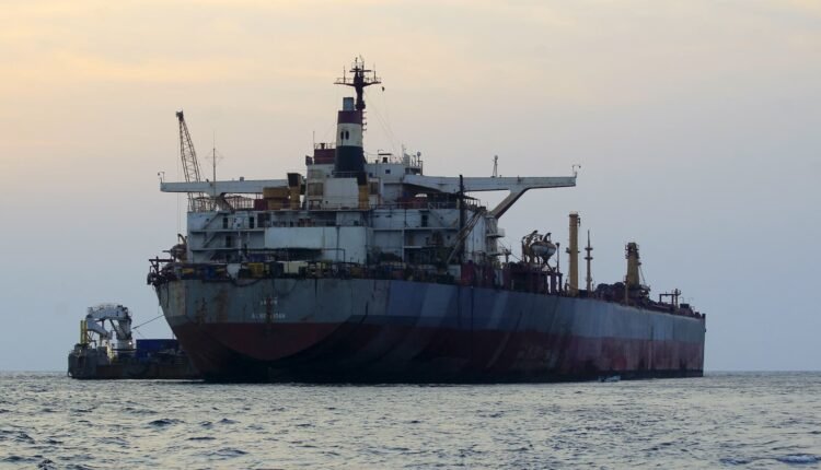 An oil tanker anchored in the Red Sea off the coast of Yemen’s contested western province of Hodeida on July 15, 2023.